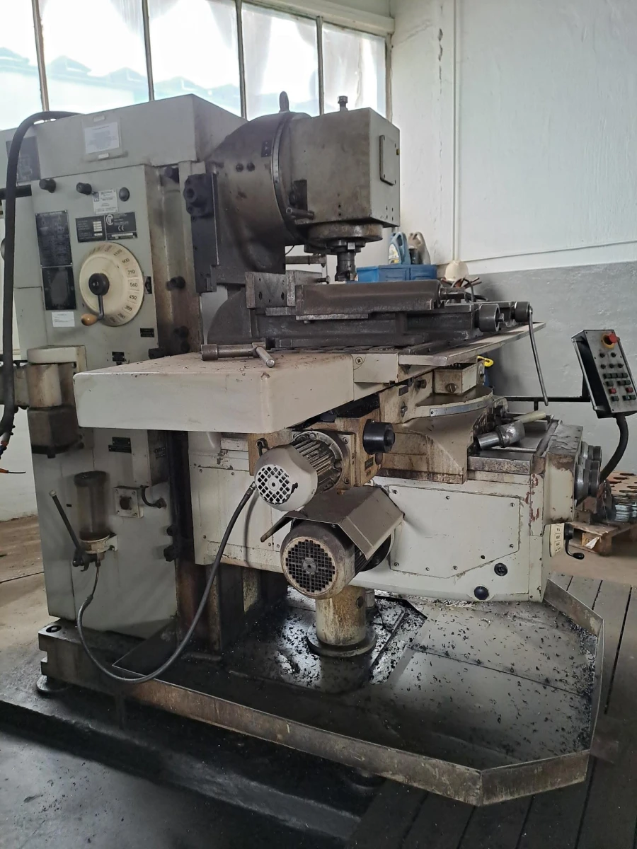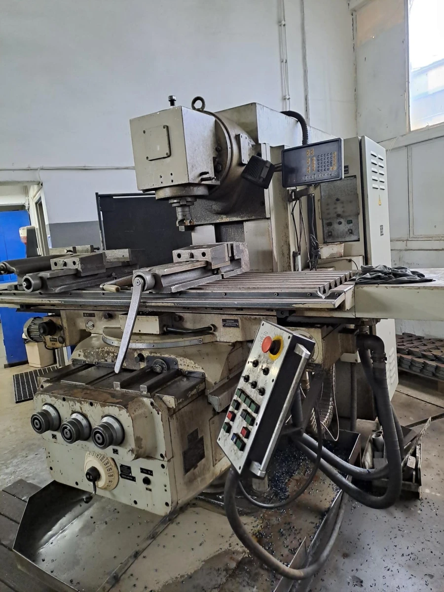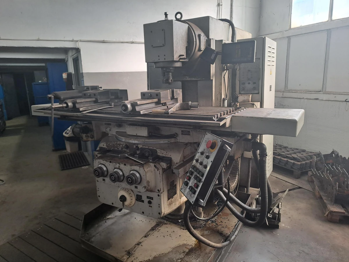 Тази използвана универсална фреза се характеризира с изключително голяма работна маса (1800 x 450 mm) и мощен 14 kW двигател, който позволява стабилна обработка на тежки детайли с тегло до 1500 kg. Благодарение на твърдата си структура, машината поддържа висока геометрична точност, която е от решаващо значение за професионалната обработка на метали.