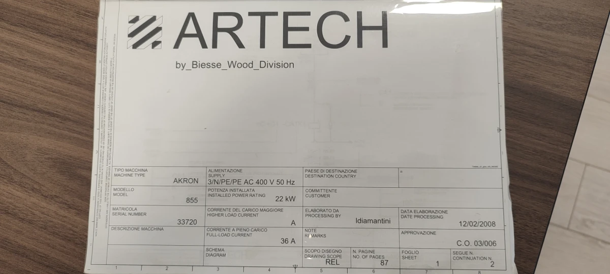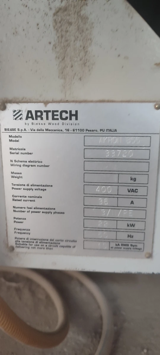 - Manufacturer: Biesse (Artech Division)