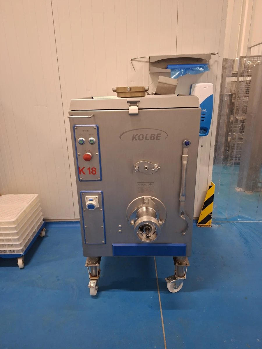 S: Kullanılmış bir Kolbe öğütücü satın almadan önce nelere dikkat etmelisiniz? A: Tahrik sisteminde sızıntı olup olmadığını, karıştırma kollarının durumunu ve boğaz ile helezonun aşınmasını kontrol etmek çok önemlidir. Bu örnekte, Enterprise E52 sistemi tamamen işlevseldir ve makinenin UVV muayene dokümanı mevcuttur.