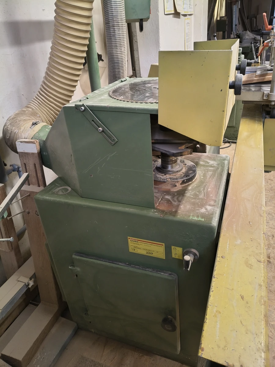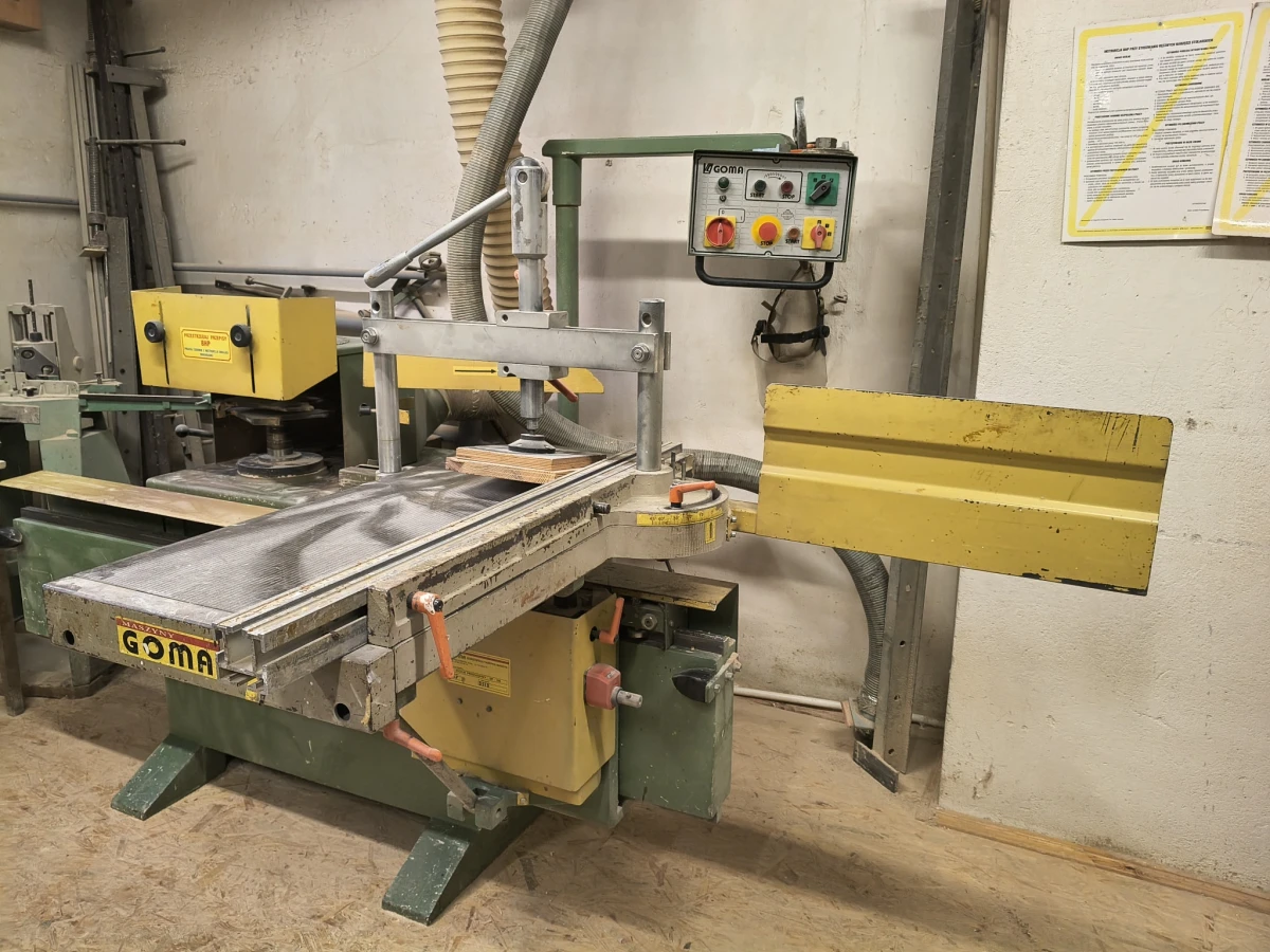 The GOMA FC-10 is a heavy-duty, Polish-made tenoning and shaping machine designed for professional cross-grain machining and profile milling. It is an ideal solution for manufacturing windows, doors, and solid wood furniture, allowing for precise trimming with a saw and profile shaping in a single pass. With nearly 10 kW of installed power and a robust cast-iron-based construction, it ensures high stability and repeatability, making it a reliable asset for woodworking shops seeking industrial performance at a competitive price point.