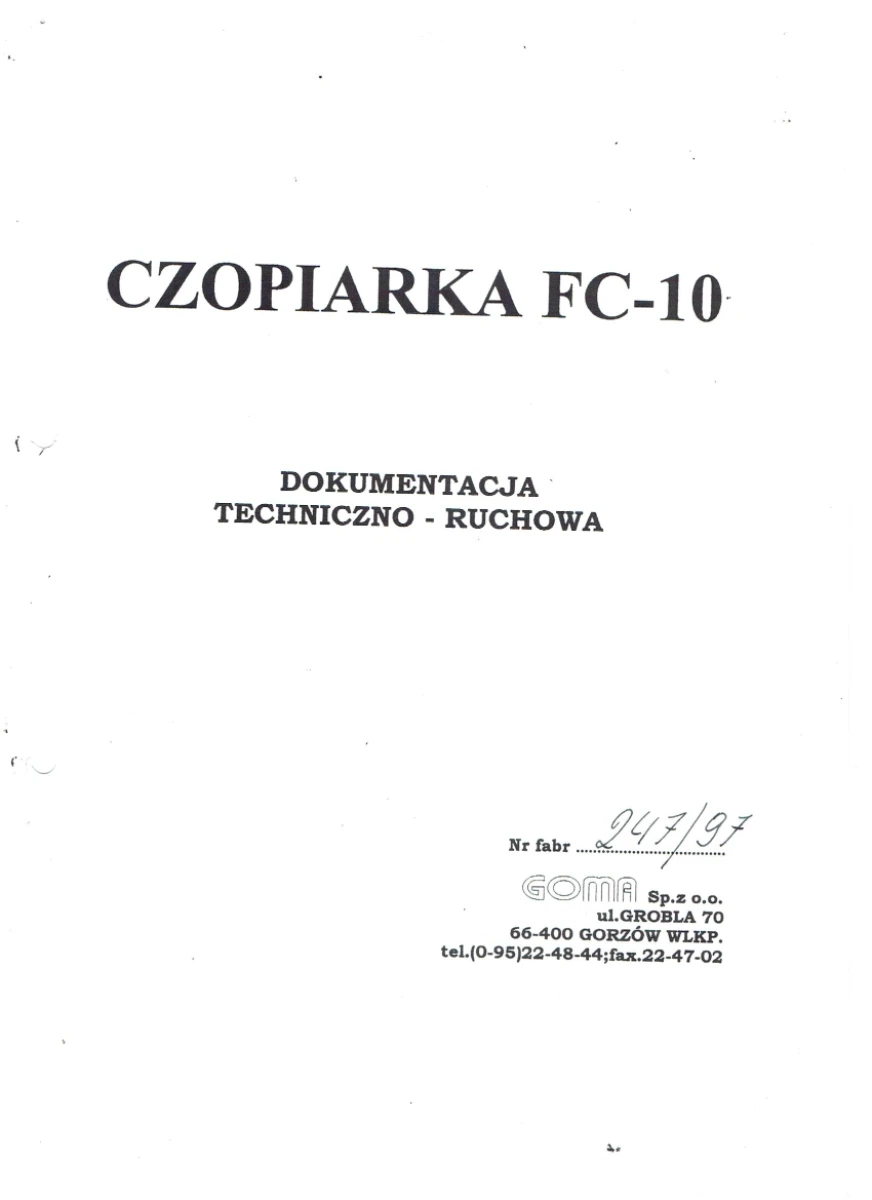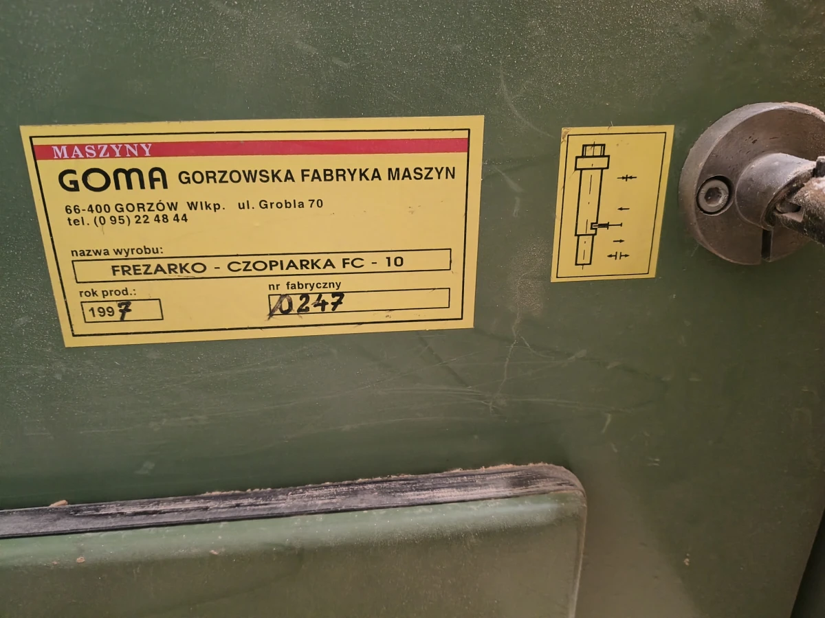 Maszyna pochodzi z polskiej fabryki GOMA, znanej z produkcji maszyn „nie do zdarcia”. Egzemplarz jest zachowany w dobrym stanie wizualnym i technicznym, regularnie użytkowany w czystym warsztacie. Na zdjęciach widoczne są kompletne osłony BHP oraz sprawne układy odciągowe. Do maszyny dołączona jest pełna Dokumentacja Techniczno-Ruchowa (DTR), co ułatwia serwisowanie oraz spełnienie wymogów inspekcji pracy.