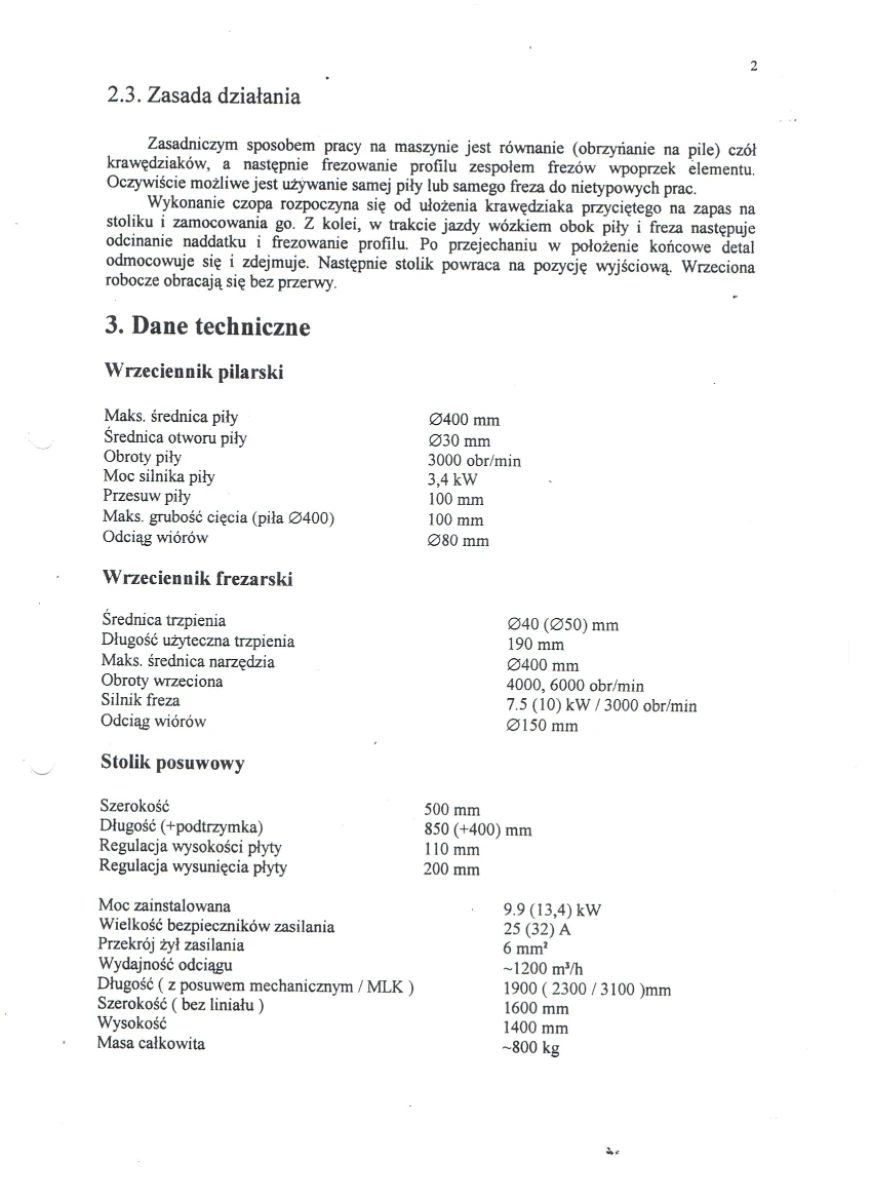 GOMA FC-10 to sprawdzona, solidna polska konstrukcja przeznaczona do profesjonalnej obróbki czół krawędziaków oraz frezowania profili poprzecznych. Maszyna idealnie sprawdza się w produkcji stolarki otworowej (okna, drzwi) oraz mebli z litego drewna, oferując precyzyjne wyrównywanie piłą i profilowanie w jednym cyklu pracy. Dzięki wysokiej mocy zainstalowanej (blisko 10 kW) oraz masywnej budowie, zapewnia stabilność i powtarzalność obróbki, co czyni ją doskonałym wyborem dla średnich i dużych zakładów stolarskich szukających niezawodnego sprzętu w rozsądnej cenie.