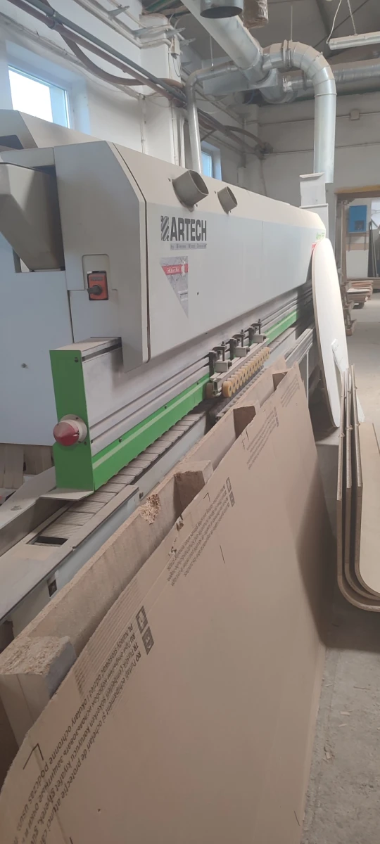 The Biesse Akron 855 Artech is a high-performance industrial edgebander engineered for medium to large-scale woodworking productions. This robust machine (3500 kg) ensures vibration-free operation and high-precision finishing. Equipped with the intuitive CNI control system, it allows for quick changeovers and consistent quality across various edging materials, including PVC, ABS, and wood veneers.