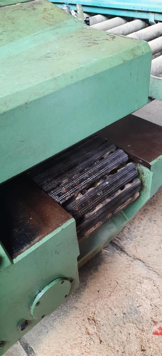 We are proud to offer a robust, professional Gabbiani multi-rip saw, manufactured by one of Italy’s most respected names in woodworking machinery. This unit is engineered for heavy-duty, continuous operation in sawmills and large-scale woodworking plants. With its massive 1.8-ton frame, this machine provides the vibration-free stability required for precise, high-speed timber processing.