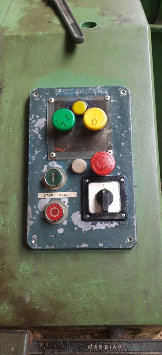 This Gabbiani multi-rip saw is in excellent working condition and has been well-maintained. The feed track (chain) is in great shape, providing a reliable grip and consistent material flow. The control panel is straightforward, and the height adjustment mechanism is precise and easy to operate.