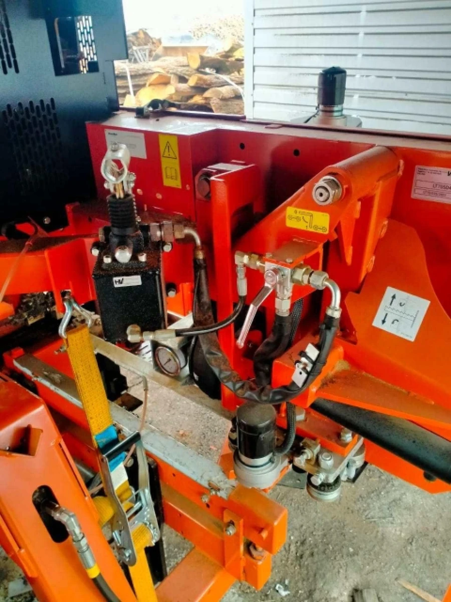 - Układ hydrauliczny (DH3): Pełny załadunek kłody, obracak łańcuchowy, rolki poziomujące, docisk dwuwspornikowy